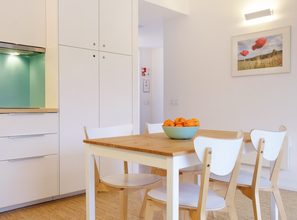 Verder is er een volledig ingerichte badkamer, die niet heel ruim is, en een prima uitgeruste kitchenette waar u maaltijden kunt bereiden. De grote ramen en schuifdeuren naar het terras bieden een prachtig uitzicht op het omliggende landschap.