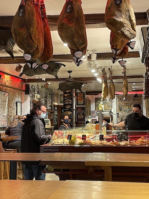 Last but not least: San Sebastián. We zaten in een prachtig art deco hotel. Onze kamer op de 5e etage had een fantastisch uitzicht over de Bahia La Concha. Met recht A room with a view. San Sebastián is een geweldig leuke stad. Ook wel een beetje commercieel natuurlijk, de winkels in het oude centrum hebben zo langzamerhand allemaal plaats gemaakt voor barretjes en restaurants. Maar hier vind je wel de lekkerste pintxos die met een slokje friszure Txakoli lekker naar binnen glijden. En wat een keuze. Soms wel 50 verschillende smakelijke hapjes op een sneetje brood of aan een stokje geregen.