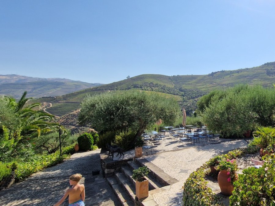 Hierna zijn we de auto op gaan halen en doorgereisd naar ons hotel aan de Douro. Na een stijl weggetje omhoog kwamen we bij de Quinta aan. Aan de voorkant ziet het er al best mooi uit, maar als je aan de achterkant van het huis komt dan wordt je echt even stil. Wow wat een prachtige tuin en wat een prachtig uitzicht! En ook een hele mooie ruime kamer. Het was hier genieten. Het eten was ook erg lekker en je kreeg iedere avond een ander portje als apero en lekkere wijnen bij het eten. En als bonus een prachtig uitzicht op de vallei van de Douro. We hebben hier nog een rondvaart gemaakt een wijnproeverij vlakbij de Quinta en ook langs de wijngaarden gewandeld. Het was hier fantastisch.
